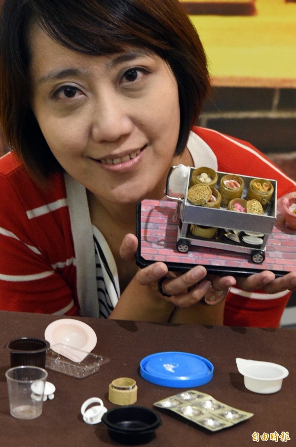 藝術家徐淑倩的袖珍藝術創作,其道具都是資源回收的廢棄物,真是化腐朽為神奇。 (記者張忠義攝)