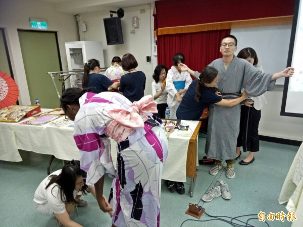 高師大師生體驗日本夏日浴衣。(記者黃旭磊攝)