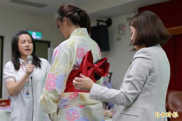 山下直子為學生穿著日本浴衣。(記者黃旭磊攝)