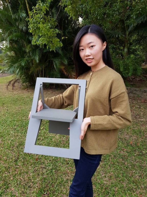 至於中華大學工業產品設計學系大三生諸美霖創作「假的」(Fake)椅子,則利用幾何原理,設計出打開時就是一張含有椅背的普通坐椅,但收起來的時候,則成為完全不占空間的「平面」,簡單的風格,兼具輕巧實用的創意,也一舉拿下金牌和特別獎。