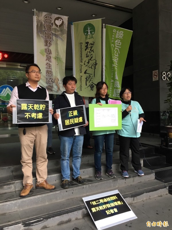 審查會議開始前,多個環團聚集在環保署前,強烈表達對此案疑慮,台灣蠻野心足生態協會律師蔡雅瀅認為,目前核二廠用過核燃料露天乾貯設施的規劃,讓居民有諸多疑慮,包括露天設施易腐蝕、輻射易擴散,護箱貯存數量密度也過高等,在露天乾貯未興建,且台電承諾第二期將改採室內乾貯,目前規劃應該停止。