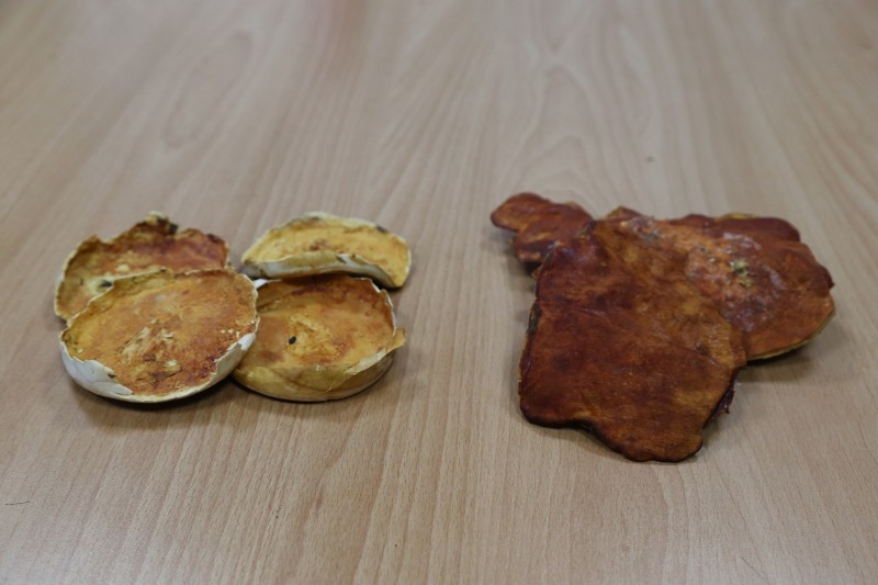 興大研究可在實驗室培養出牛樟芝實體(左),不必依賴牛樟樹段長成牛樟芝(右)。(圖:興大提供)