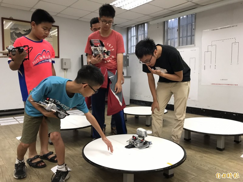 小朋友參加輪型機器人障礙競速。(記者廖淑玲攝)