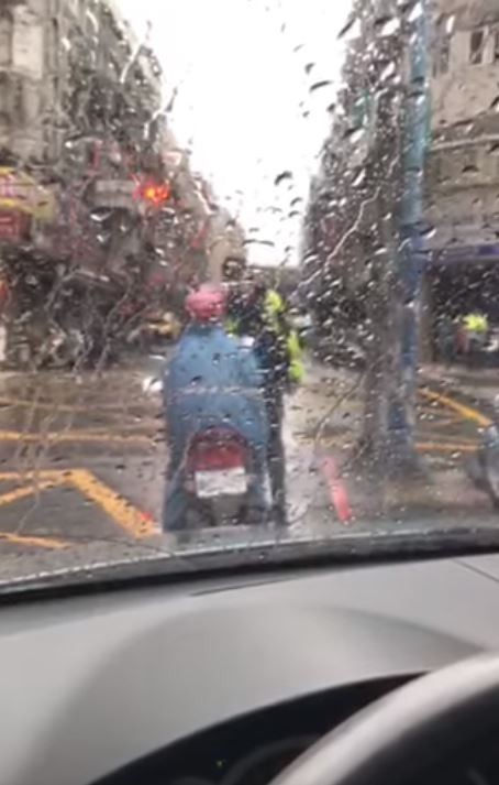 最後警察似乎快被盧到崩潰,大聲要女騎士下車避難,女騎士還問「要下車喔?」員警無奈回應「啊不然咧?」從機車上下來的女騎士可能是對警察不滿,嘴裡還碎碎念著「沒有愛心!」、「沒有愛心!」