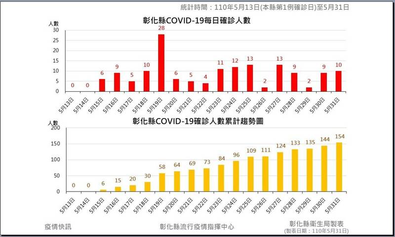 彰化縣今新增10例,累計154例。(彰化縣政府提供)