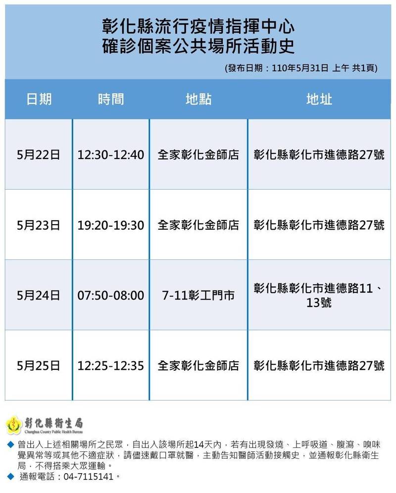 縣長王惠美今天公布4處確診者足跡,都在國立彰化師範大學、彰工校區四周的便利超商。