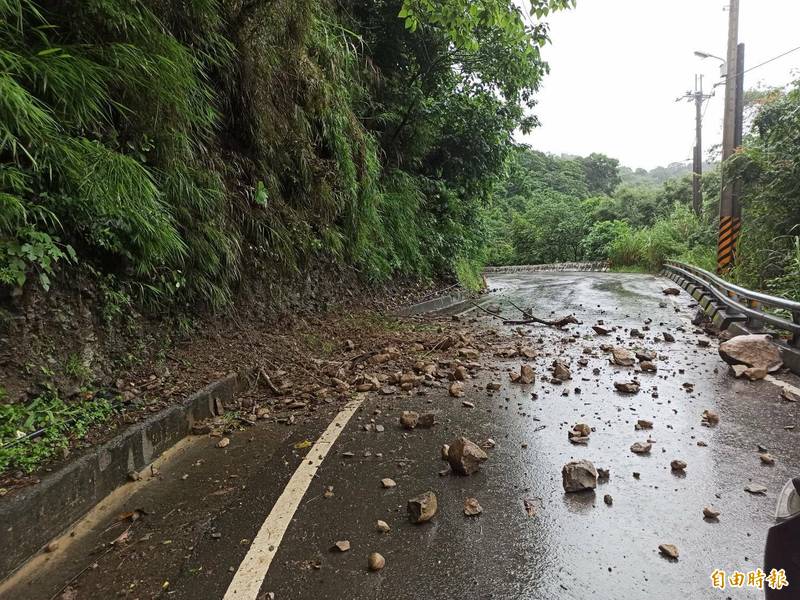 南橫公路89.8公里路段落石崩落。(記者黃旭磊攝)