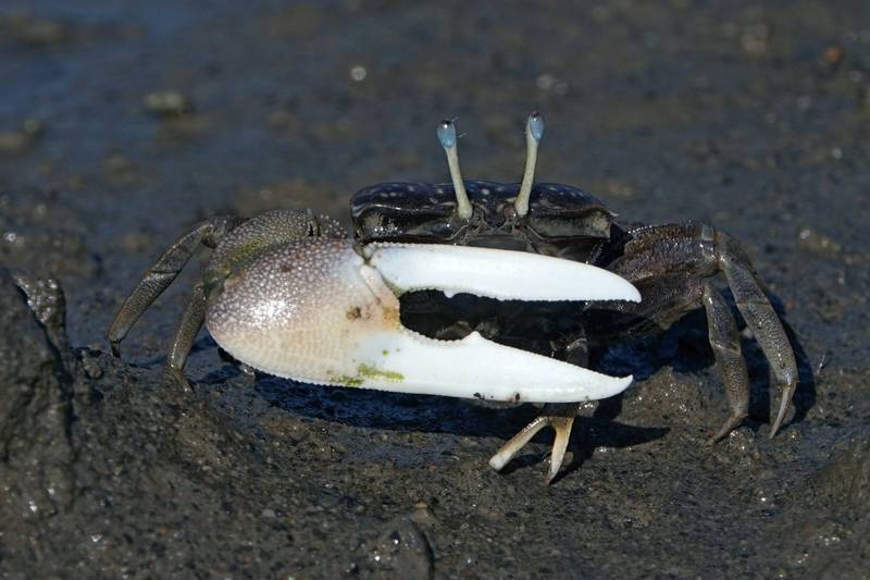臺灣旱招潮在退潮後泥灘地上的活動。(興大無脊椎動物研究室提供)