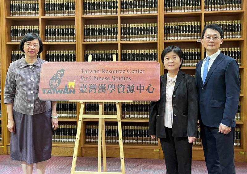 國家圖書館館長曾淑賢(左)與國際合作組主任洪淑芬(右2)、編輯林能山(右1)努力拓展「台灣漢學資源中心」全球據點」。(國圖提供)