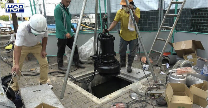 沉水式泵浦裝設,大幅改善淹水狀況。。(記者黃旭磊攝)