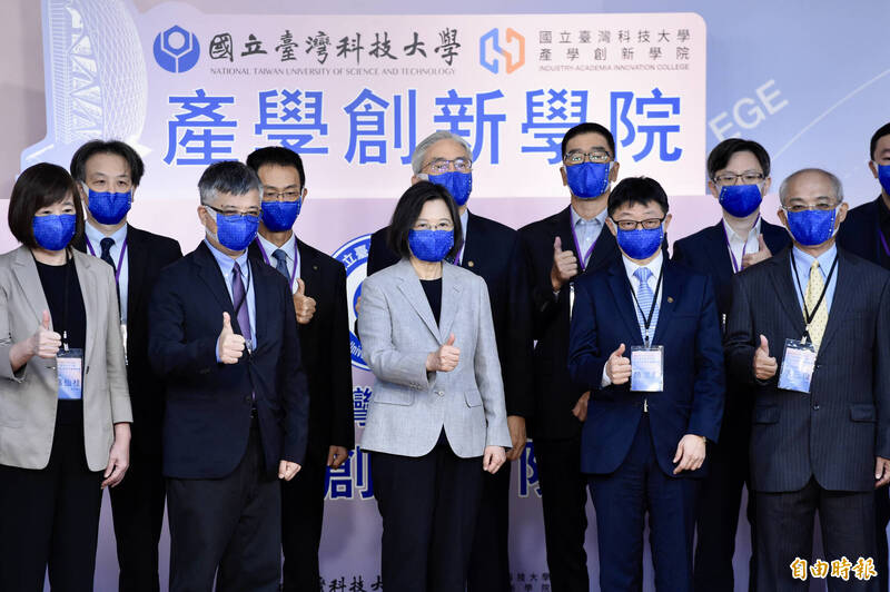 國立台灣科技大學「產學創新學院」今舉行揭牌儀式,總統蔡英文表示,這是承擔起為國家培育先進科技人才的重責大任,盼學校在既有優勢及基礎上,繼續強化關鍵技術,提升資通訊產業、能源科技產業的國際競爭力。而參與的企業界代表更喊出,盼在產官學合作之下,3年要創造出100億元營業額。