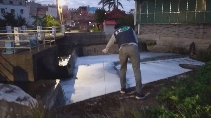 桃園八德霄裡分渠冒大量泡沫 環保局稽查開罰上游工廠