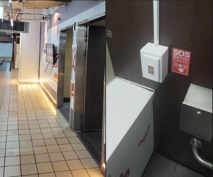 阿在台北車站停車場廁所跌倒按鈴求救,求救鈴竟未與停車場管理室連線。(擷取自立委劉建國臉書)