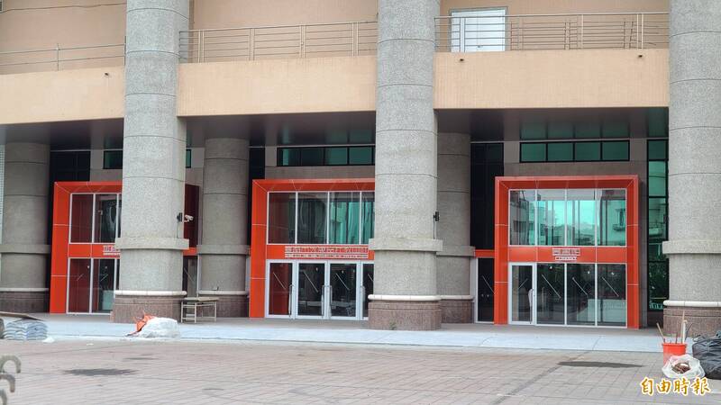 台南市永康社教中心投入超過2億元整建,外側施工圍籬近日拆除,新改造的橘色大門「知識之道」吸引路過民眾目光。(記者劉婉君攝)
