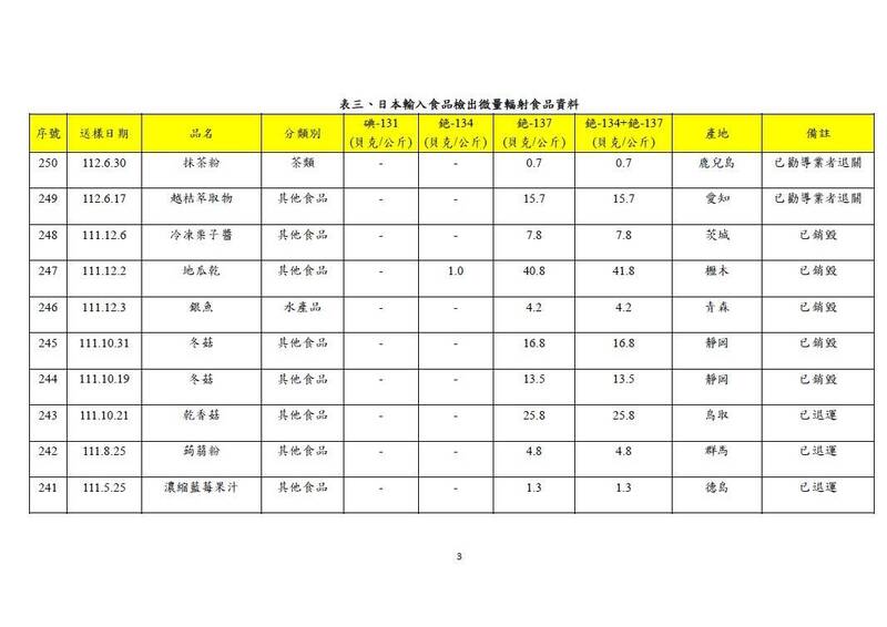 從2011年3月15日至今年7月24日止,已累積總檢驗日本進口食品輻射殘留的批數達21萬2878批,其中250 個樣本被檢驗出含微量輻射,但全都沒有超出我國及日本標準。