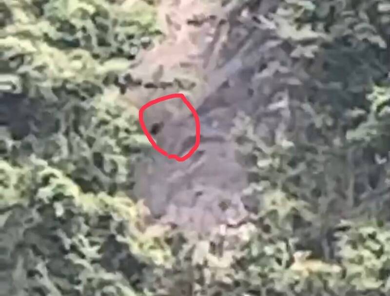 夏克威在清泉瀑布區峭壁拍攝到移動的黑色影子,認為是體格龐大的台灣黑熊。(夏克威提供)