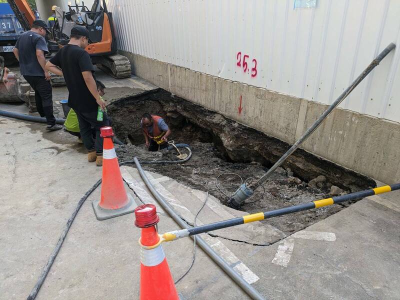 新竹市和平路建案旁也出現天坑,市府已要求建案廠商停工並開罰。(新竹市議員林彥甫提供)
