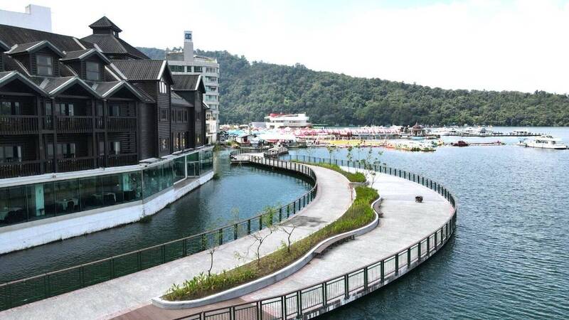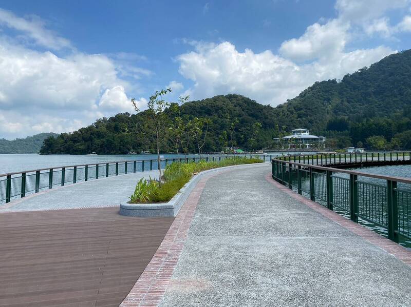 日月潭伊達邵水上自行車道銜接日月潭纜車站,9月23日開通後可串聯至九蛙觀景平台。(記者劉濱銓攝)
