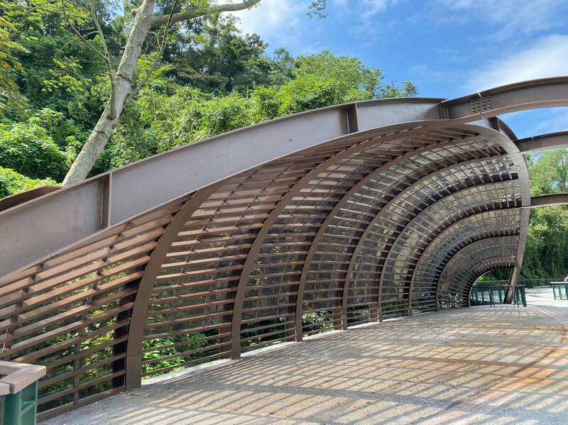 日月潭伊達邵水上自行車道將於9月23日開通,沿途有魚簍花架休憩平台供單車族休憩。(日管處提供)