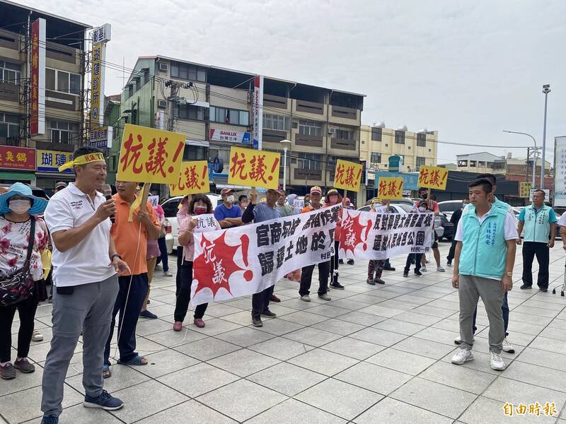 村民質疑公墓整地後應先蓋百姓公祠卻沒蓋,集結上百人到公所抗議。(記者陳冠備攝)