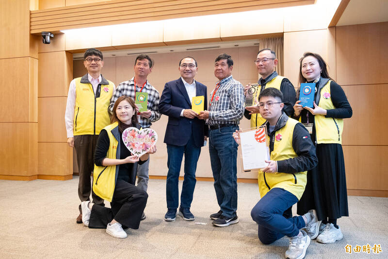新北市打造萬金杜鵑品牌,榮獲5大國際獎項,花農今天在市政會議獻獎。(記者賴筱桐攝)