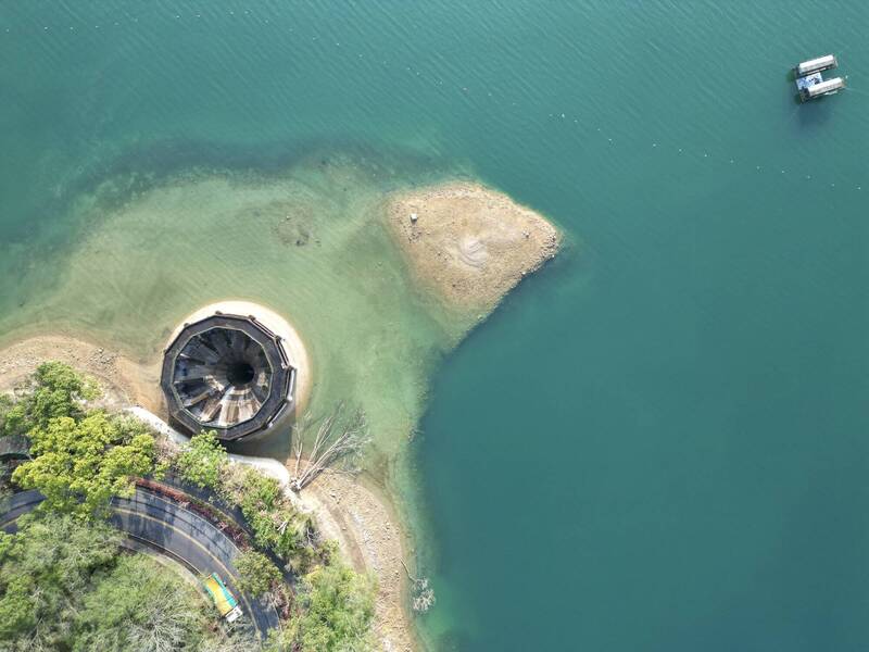 日月潭近期配合供應農水,蓄水率都不到8成,今水量還跌破億噸大關,距滿水位已大降逾4公尺,不僅岸邊可見倒木與裸露土石,水面與岸上的落差也超過1層樓,甚至之前在水社壩附近的「大鳥吃蟲」地景,也因水位續降,使得「大鳥」沙洲現形,水情持續吃緊。