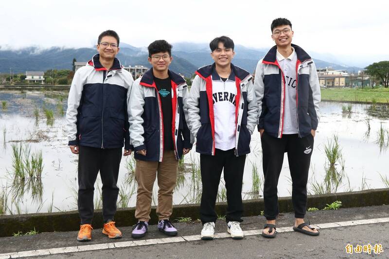 林俊名(左1)公司化經營農耕隊,左2起為農耕隊成員陳佑豪、陳寬祐、林承彥。(記者蔡昀容攝)