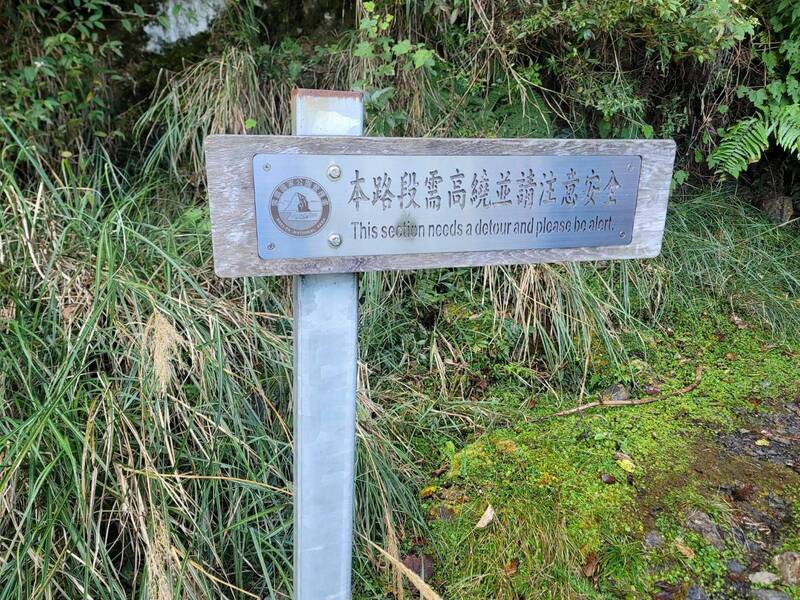 雪管處於230林道9K崩壁處,架設建議高繞的指示牌面。(圖由雪霸國家公園管理處提供)