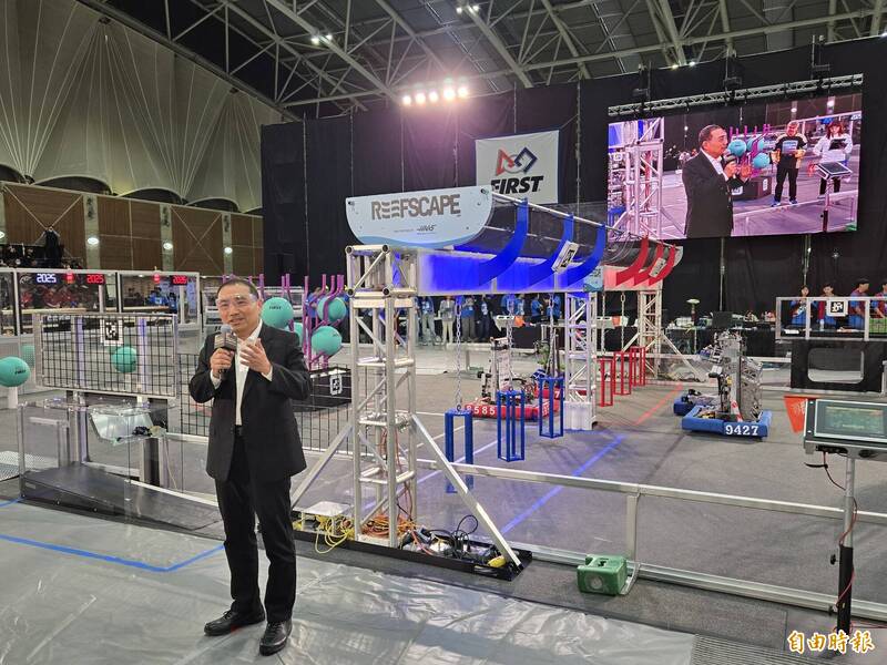 今年度「FRC(FIRST Robotics Competition)機器人台灣區大賽」,新北市長侯友宜期勉參賽者勇於挑戰。(記者黃子暘攝)
