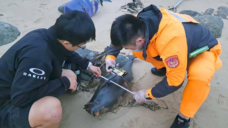 海大分校永續保護環境與健康系助理教授陳銘仁說,每個月都會帶學生到學校後方的沙灘淨灘、清理海洋廢棄物,在淨灘前夕他今天傍晚先去觀察沙灘情況,沒想到卻發現一隻擱淺已死亡的海豚。