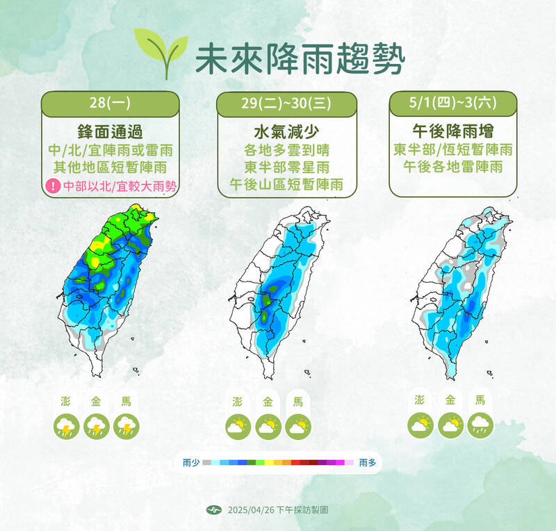 未來降雨趨勢。(氣象署提供)
