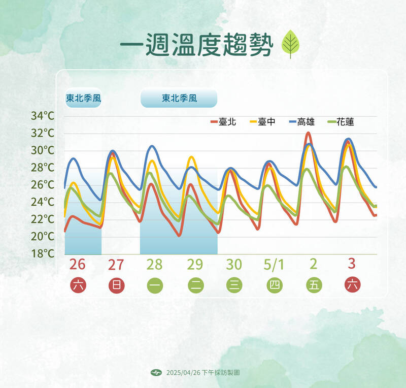 一週溫度趨勢。(氣象署提供)