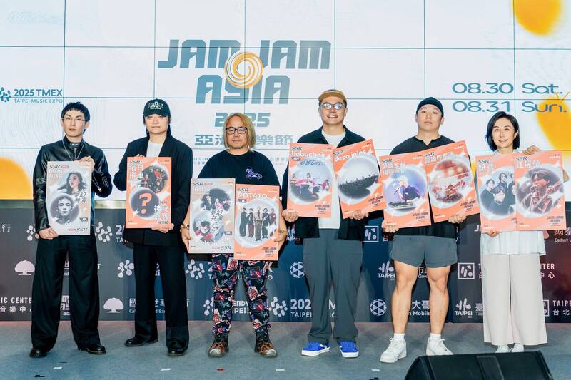 JAM JAM ASIA 亞洲音樂節策展人米奇林MCKY(左起)、國國、老諾、蕭達謙Echo、Hauer、北流董事長黃韻玲。(台北市文化局提供)