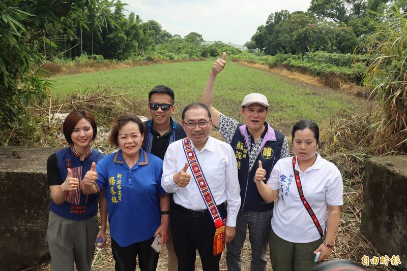 新北市長侯友宜(中)偕同新北市原住民議員會勘原住民社宅用地。(記者翁聿煌攝)