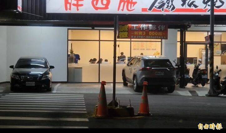 晚間時段,庇護島標誌桿幾乎與背景融合,無反光設計加上店家燈光干擾,視線辨識度大幅降低。(記者張聰秋攝)