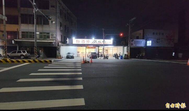 庇護島標誌在夜間幾乎看不見,用路人若不熟悉路況,或從側巷出來,容易誤判而撞上。(記者張聰秋攝)