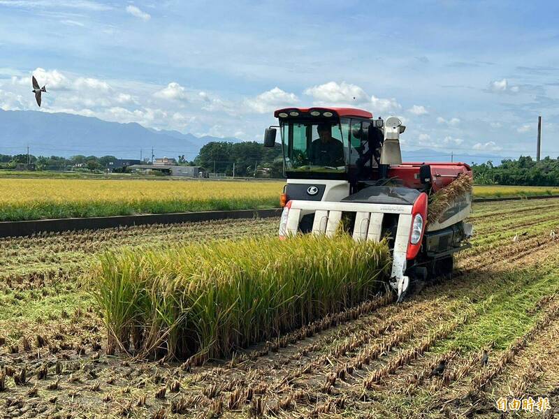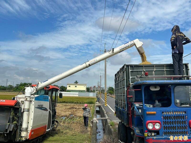雲林一期稻作進入收割期,今年穀價創一期作歷史新高,且收成也比往年好。(記者黃淑莉攝)
