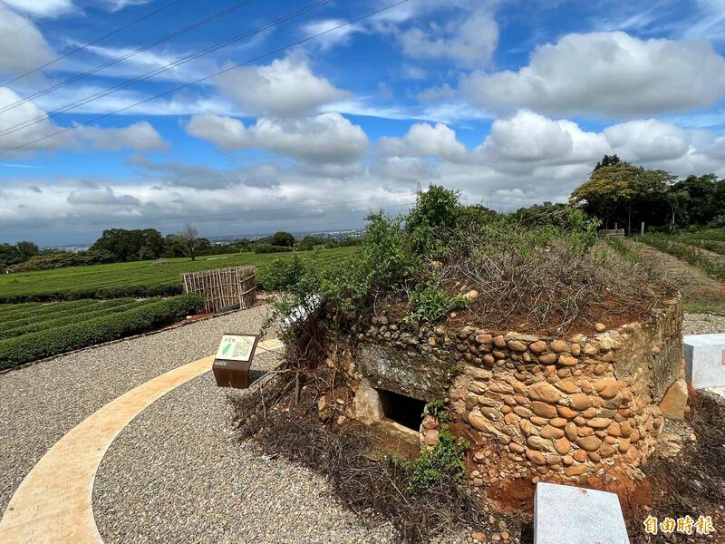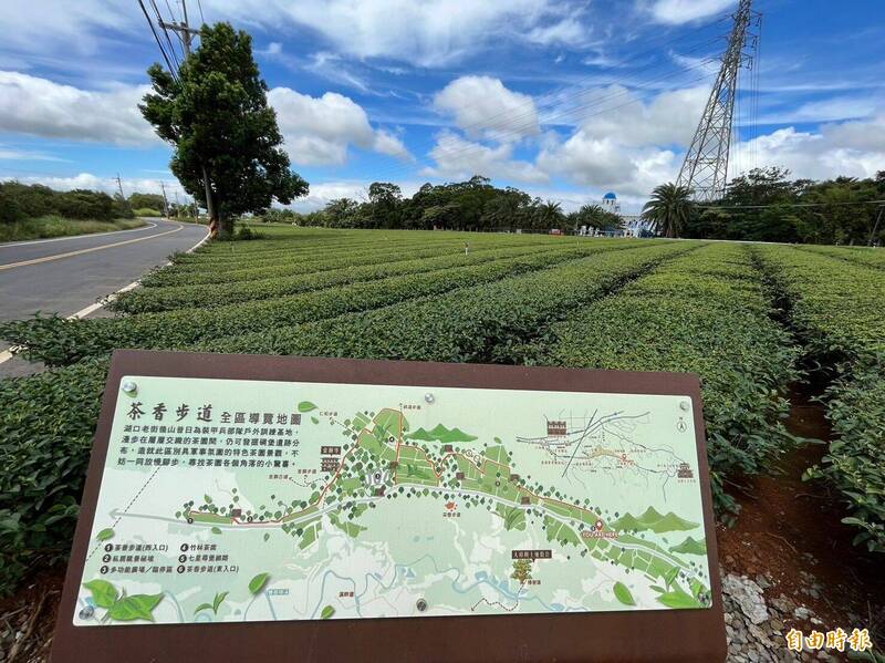 茶香步道四周遍佈茶園,沿線還有軍事碉堡遺跡,視野遼闊。(記者廖雪茹攝)