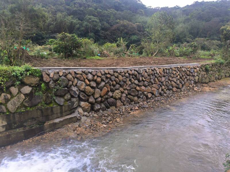 新北市三芝區錫板溪護岸修復工程。(新北市水利局提供)