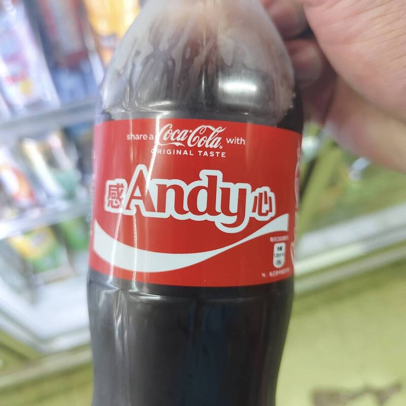 一名網友昨(24)日下午在臉書社團「爆廢公社公開版」 這款印有「感Andy心」字樣的可口可樂,直呼「這諧音梗我覺得算是地獄梗吧」,吸引近萬人按讚、留言數百則。