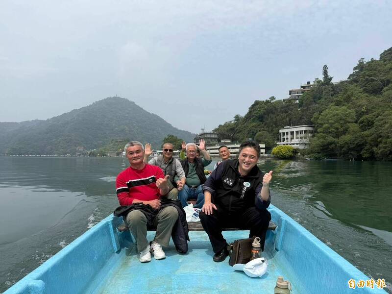 來去孤島!桃園市復興區長蘇佐璽(右1)帶隊搭乘舢舨探訪長興1鄰的仙島。(記者李容萍攝)
