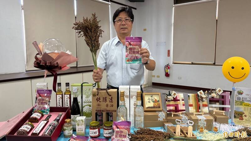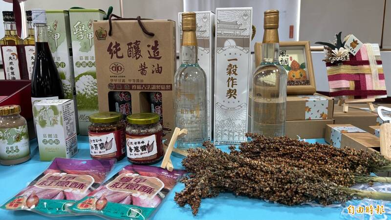 學甲農會的紅蔥頭、高粱、醬油等加工農產品。(記者楊金城攝)