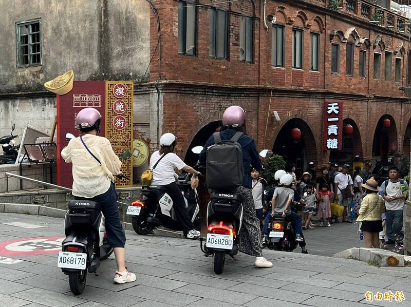 金門每逢放假日,可以看見不少中國遊客騎乘微電車,在金門街道竄遊。(記者吳正庭攝)