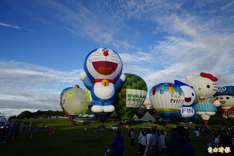 本屆熱氣球嘉年華主題球「哆啦A夢」十分吸引眾人目光。(記者劉人瑋攝)