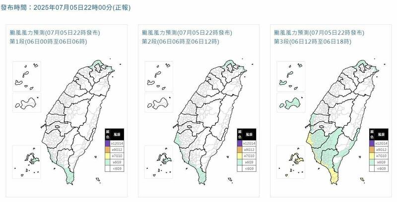 氣象署即時預報科科長劉宇其指出,5日上半天到下週一(7日)上半天是影響台灣最劇烈的時候,在接近台灣的過程中,因環境適合發展,暴風半徑會持續增加,預計6日颱風中心到達澎湖附近時,會達到輕度颱風的上限。