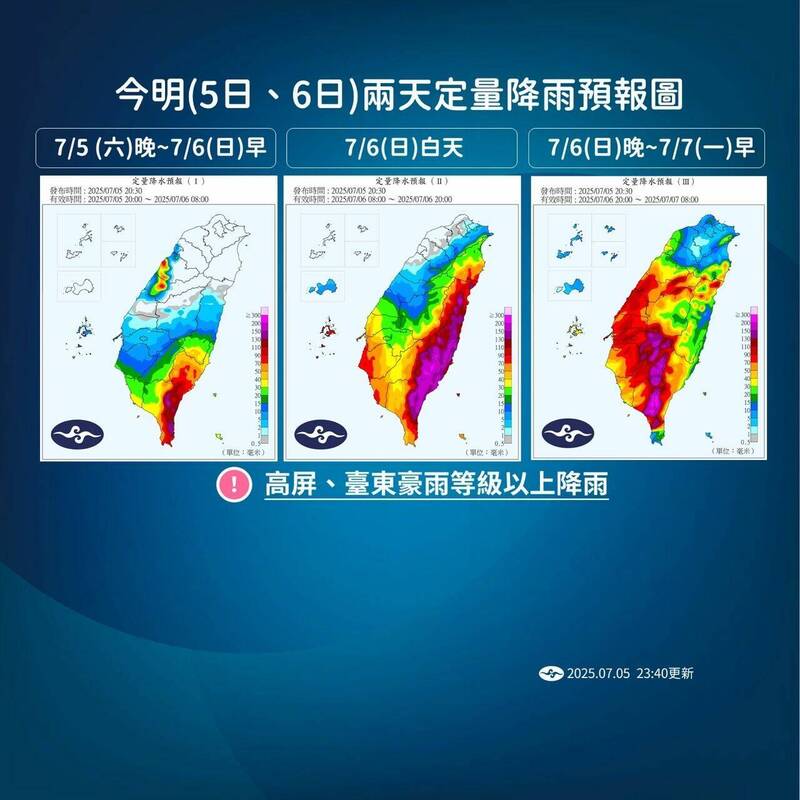 5、6日定量降雨預報圖。(氣象署提供)