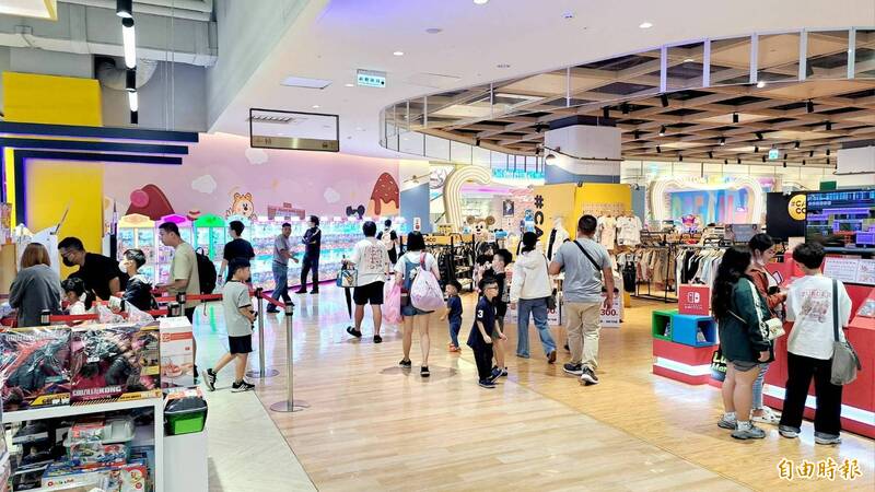 颱風天岡山樂購廣場的逛街人潮不少。(記者李惠洲攝)