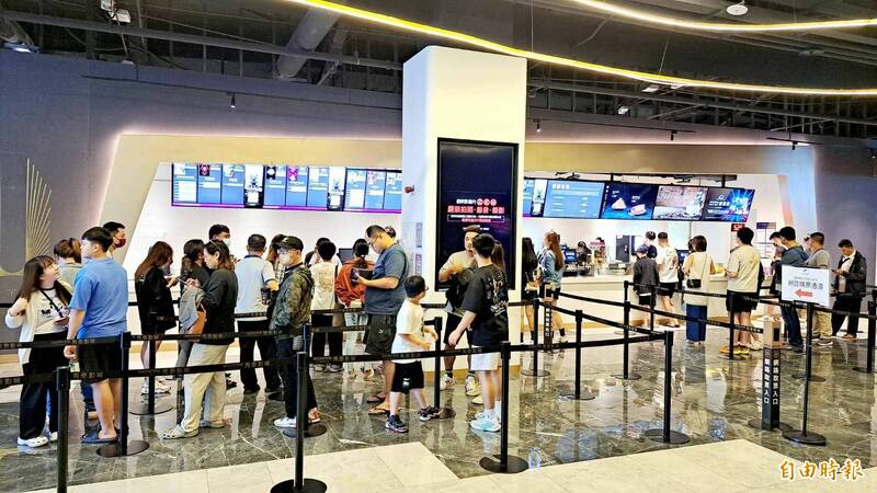 岡山樂購廣場的秀泰影城,今天不少人排隊買票。(記者李惠洲攝)