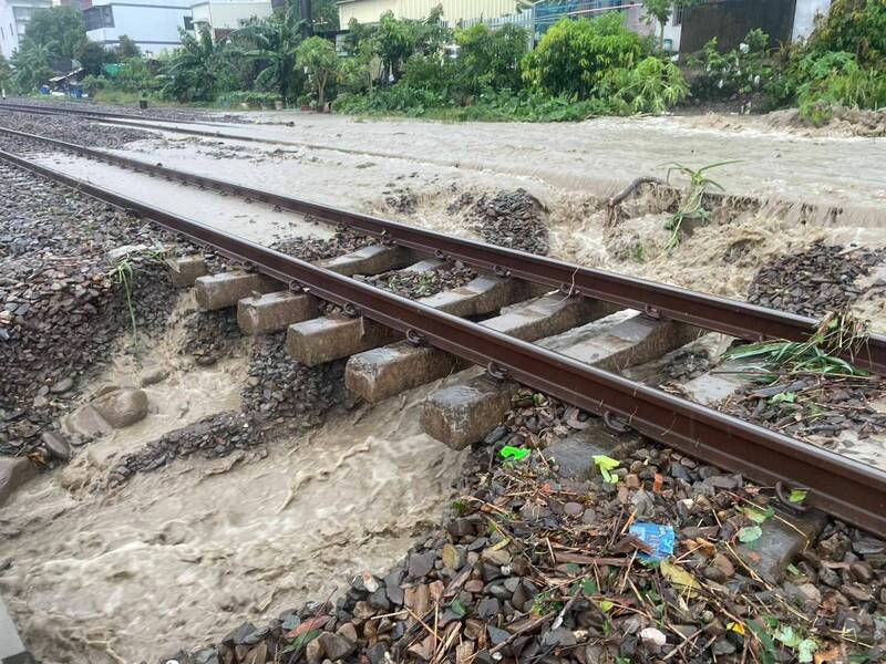受到豪雨影響,7月8日下午2點25分,台鐵彰化縣二水站至雲林縣林內站間雙線不通。(台鐵提供)
