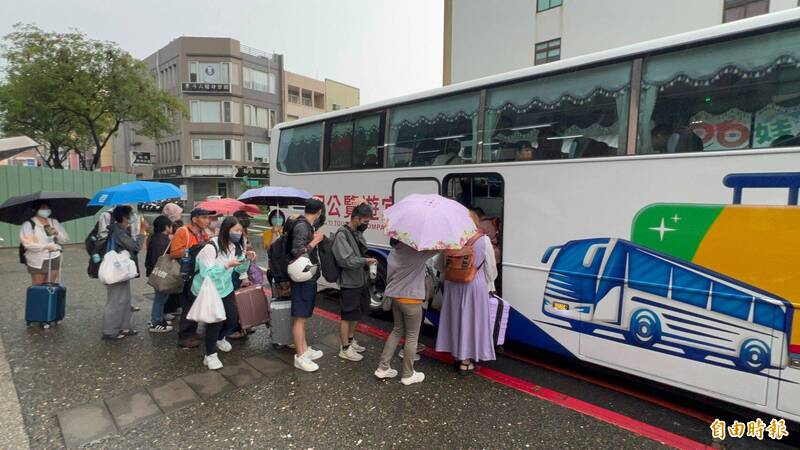 豪大雨造成台鐵林內到二水段路線掏空雙向不通,台鐵啟動公路接駁。(記者黃淑莉攝)
